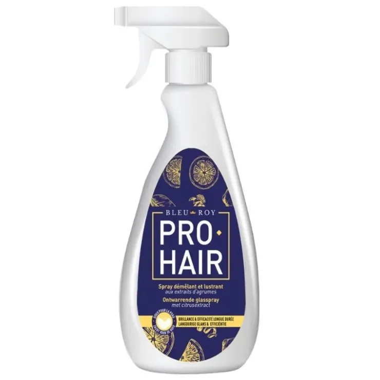 Spray démêlant et lustrant aux extraits d’agrumes pour les crins et la robe des chevaux – Pro-Hair de Bleu-Roy