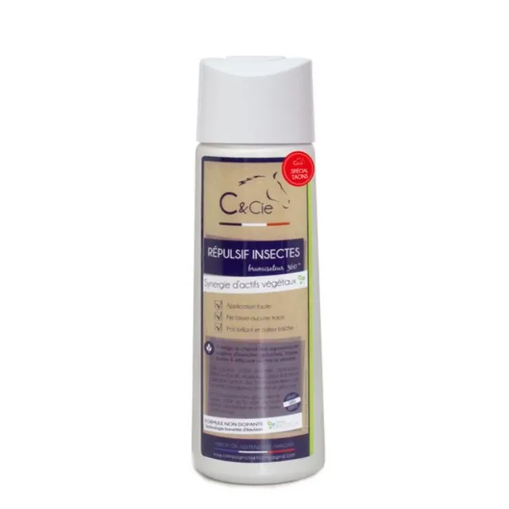 Pour les zones sensibles (yeux et naseaux), utiliser plutôt le Répulsif insectes Gel.