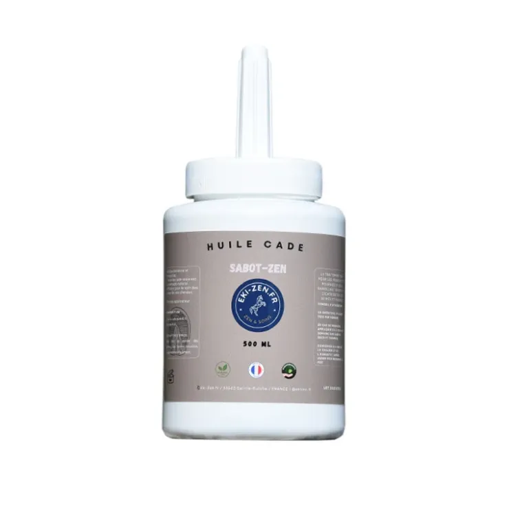 L’Huile de Cade de Eki-Zen est un soin traditionnel et naturel extrait du bois de genévrier cade par distillation. Reconnue pour ses propriétés antiseptiques et antifongiques exceptionnelles, elle constitue le traitement de référence pour l’entretien des sabots, la prévention de la pourriture des fourchettes et la protection contre l’humidité.