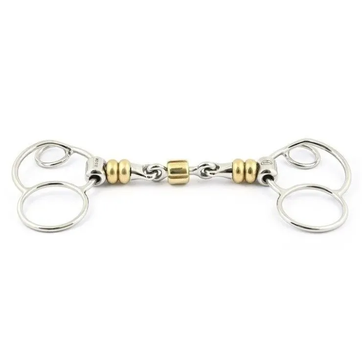 Ce mors peut être utilisé avec des rênes attachées de manière fixe sur l’anneau du bas, avec des alliances ou avec deux paires de rênes. Idéal pour des chevaux trop embouchés et pour un cavalier souhaitant ré-apprendre à son cheval à fonctionner.