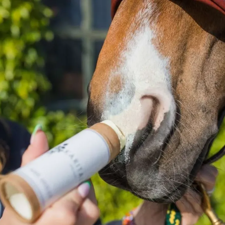 Appliquer directement sur les zones à protéger du soleil, avant chaque exposition au soleil du cheval.