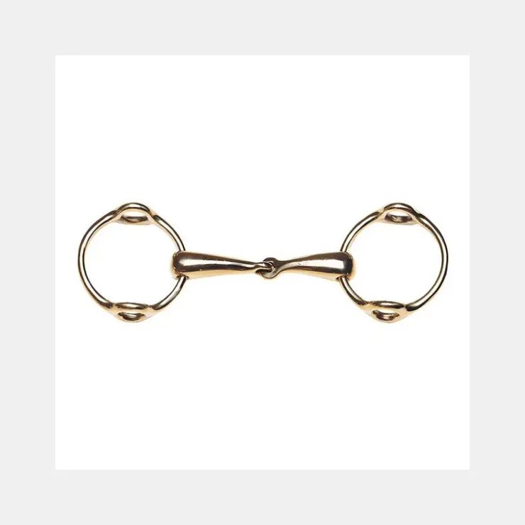 - Le mors à brisure simple en cyprium combine les avantages du cuivre et de l’inox : décontraction et solidité