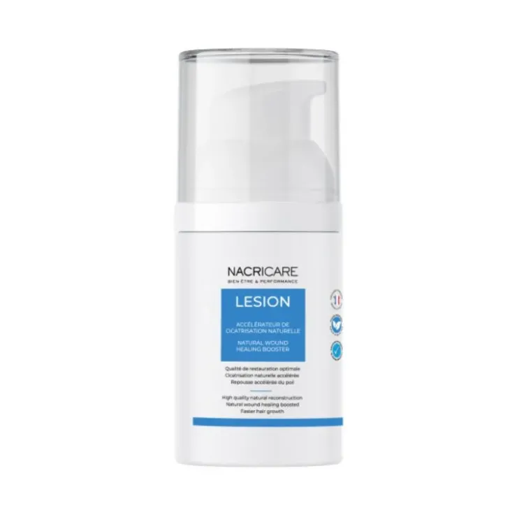 Nacricare Lesion tire son efficacité des biopolymères marins (substance active de la nacre) qui, en apportant plus de 18 acides aminés, des oligo-éléments et des antioxydants, offrent tous les éléments nécessaires à une bonne cicatrisation, notamment par stimulation des facteurs de croissance intervenant dans la réparation cutanée.