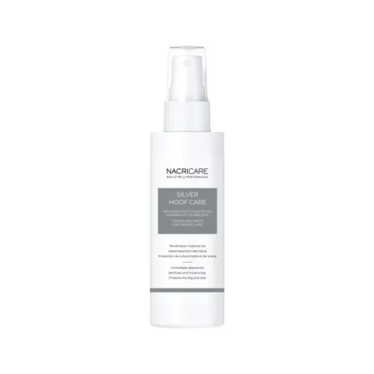 – Pulvériser la solution sur l’ensemble de la sole en insistant sur les lacunes de la fourchette.