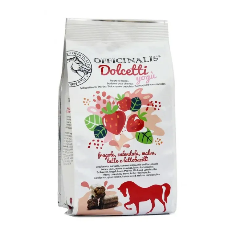 Parfumés avec des morceaux de fraises déshydratées associés à des feuilles de mauve et de calendula, les friandises Officinalis offriront une véritable récompense à votre cheval.