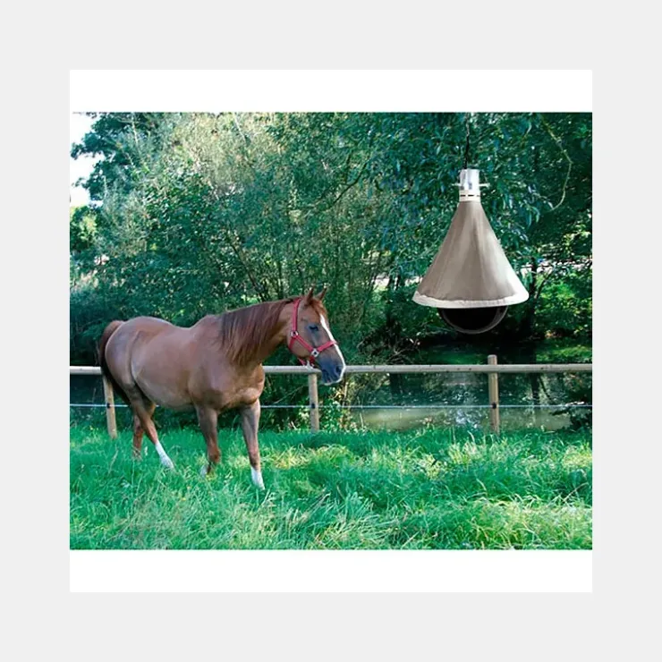 Le Piège à taons TaonX Eco est un piège anti-taons naturel facile à installer et accrocher lorsque votre surface à protéger est réduite ou que l’installation au sol n’est pas possible. Il se fixe facilement à un arbre ou au plafond des écuries grâce à la chaîne à maillons fournie.