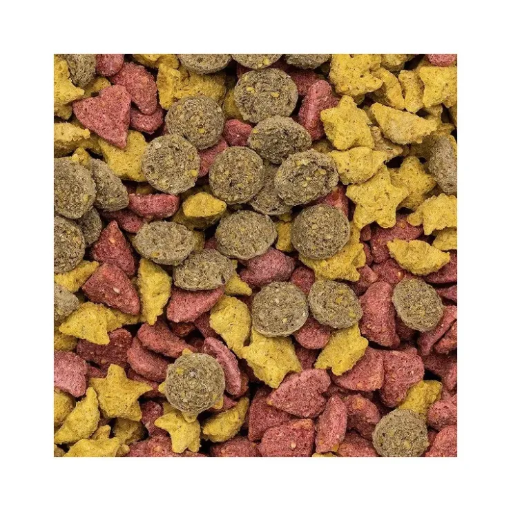 Mangue : maïs, huile de colza, carbonate de calcium, morceaux de mangue 0,5%, chlorure de sodium.