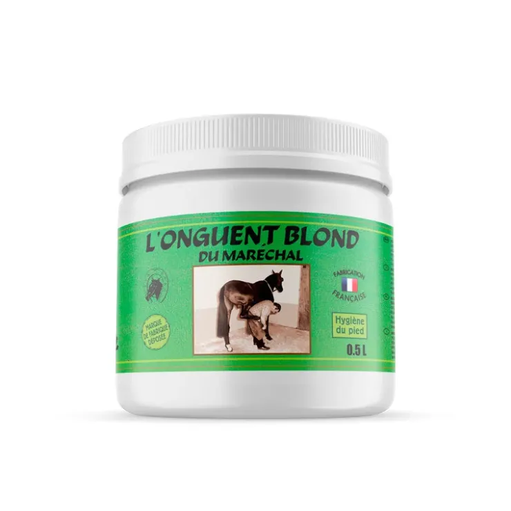 Composé de produits entièrement naturels et sans goudron, l’Onguent Blond du Maréchal est un soin du pied. Il est notamment approprié pour les chevaux aux sabots secs et cassants grâce à sa richesse en huile de laurier pure qui a des propriétés nourrissantes et hydratantes.