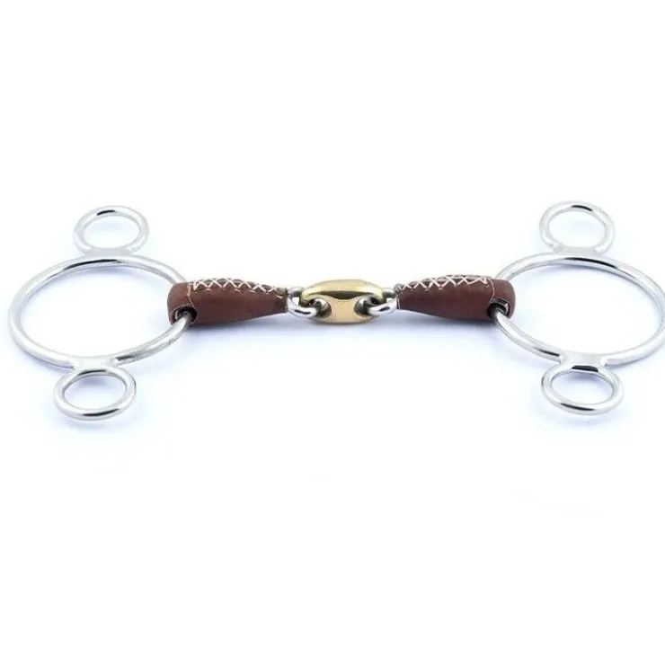 Ce mors peut être utilisé avec des rênes attachées de manière fixe sur l’anneau du bas, avec des alliances ou avec deux paires de rênes. Le canon gainé cuir permet d’éviter un contact trop froid dans la bouche du cheval et de lui apporter un peu plus de confort.