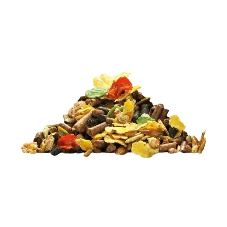 Son de blé, Flocons de maïs, Luzerne déshydratée, Flocons d’orge, Mélasse de canne à sucre, Orge soufflée, Huile de colza, Pulpe de chicorée, Flocons de pois, Sel, Phosphate bicalcique, Graines de lin cuites extrudées, Carottes séchées, Argiles, Carbonate de calcium, Huile de lin, Fructo oligosaccharides, Glucosamine 2KCL produite par fermentation, Sulfate de chondroïtine, Germes de blé, Levures de bière.