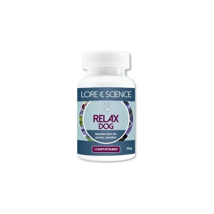 Relax Dog de Lore et Science est un aliment complémentaire spécialement formulé pour accompagner les chiens anxieux, nerveux ou hyperstressés. Sa composition naturelle favorise la détente, préserve les ressources physiques et améliore la capacité de concentration lors d’épreuves ou de situations déstabilisantes.