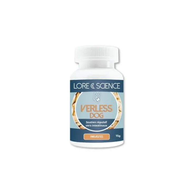 Verless Dog de Lore et Science est un aliment complémentaire à base de plantes médicinales traditionnellement reconnues pour leurs vertus vermifuges. Cette synergie végétale aide à maintenir une bonne hygiène intestinale en cas de présence de parasites tout en respectant l’équilibre de la flore digestive naturelle.