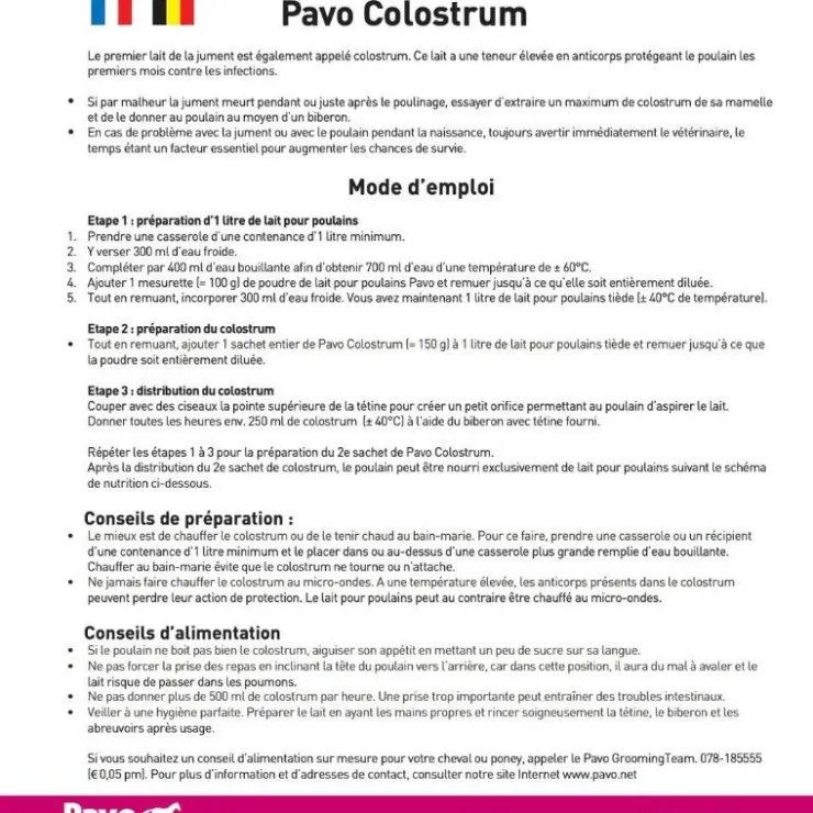 – Donnez au poulain au maximum 500 ml de colostrum par heure. Une consommation trop élevée de colostrum peut entraîner des troubles intestinaux.