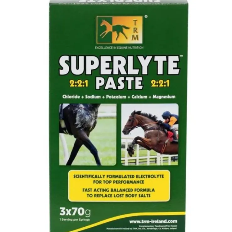 Superlyte ne contient pas de substance dopante. Laissez en permanence un accès libre à l’eau. Formulé pour les équidés – Tenir hors de portée des enfants – Conserver dans un endroit sec.
